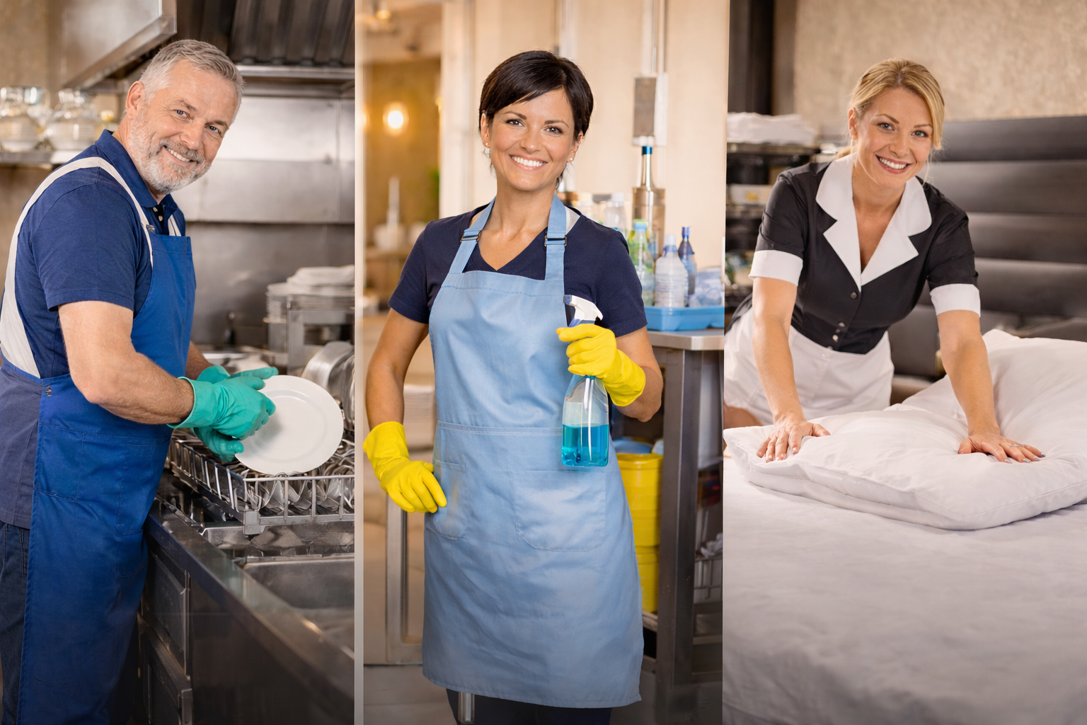 Vår erfarna stödpersonal hjälper till med disk, städ och housekeeping vid event, restauranger och hotell.